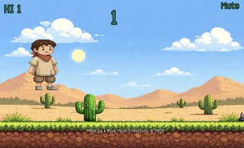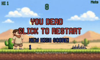 Jump over incoming cactuses 🌵 and spike traps ⚠️, rack up points, and try to beat your high score as the game gets faster and harder the longer you survive.